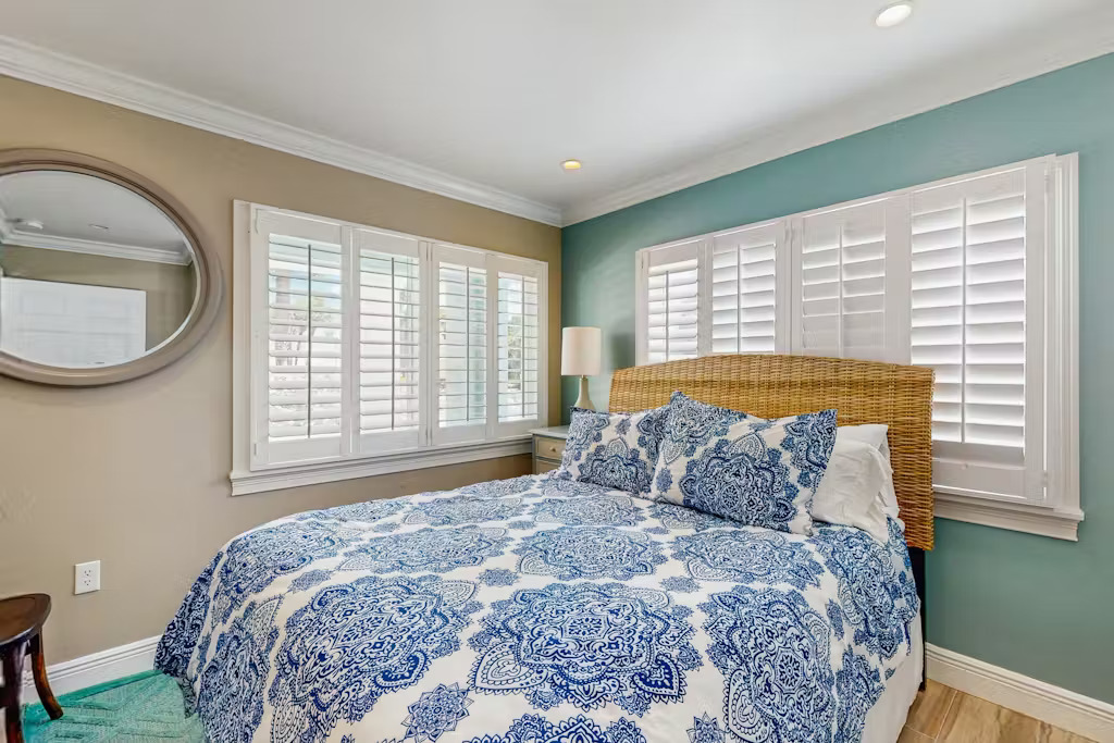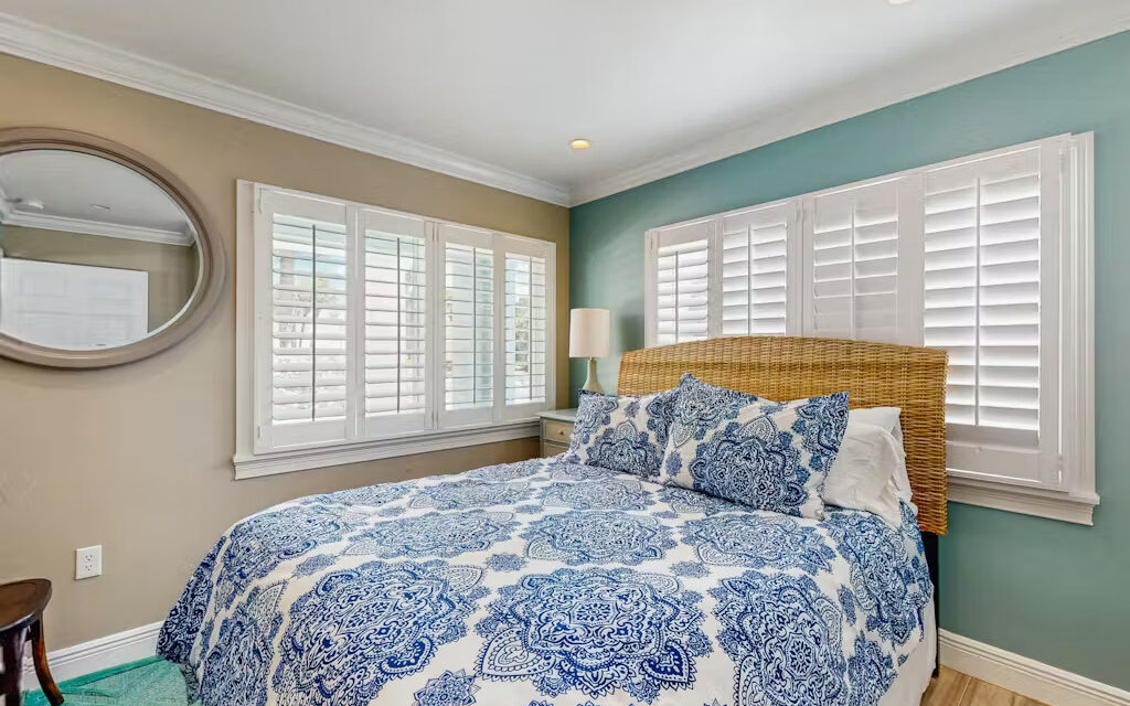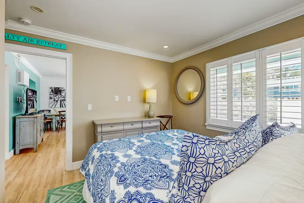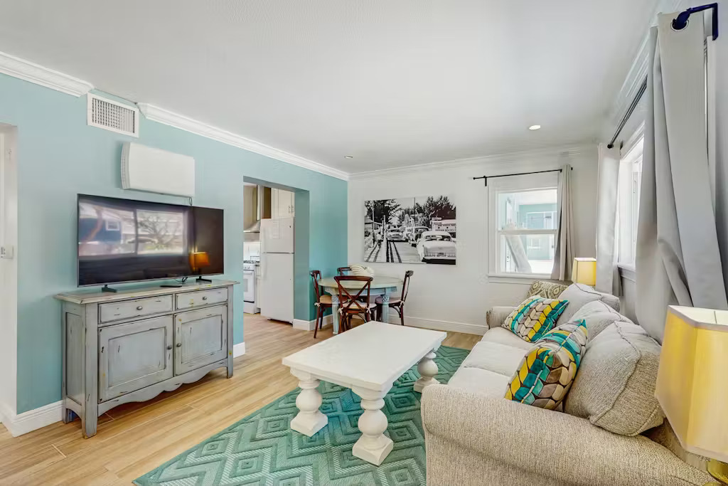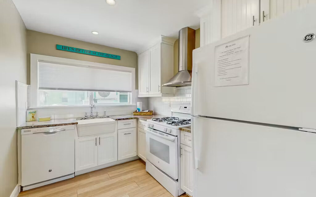 Bungalow Beach Place – Unit 9 is located in building 2 and offers everything you need for the perfect vacation including free assigned parking, daily 24/7 management availability and 24/7 check in and check out. This condo can sleep up to 6 people. It has two bedrooms and one bathroom (located just outside the two bedrooms). Each bedroom is fully appointed with brand new pillow top mattresses dressed in down bedding, ultra-soft bamboo linens, and the finest soft luxury bath towels. Brand new 50″ LED Samsung flat screen smart televisions have been installed in each bedroom. There is a full kitchen with brand new appliances including stove, oven, refrigerator, microwave, coffee maker, toaster, blender, full set of cookware, dishes, glasses and silverware.