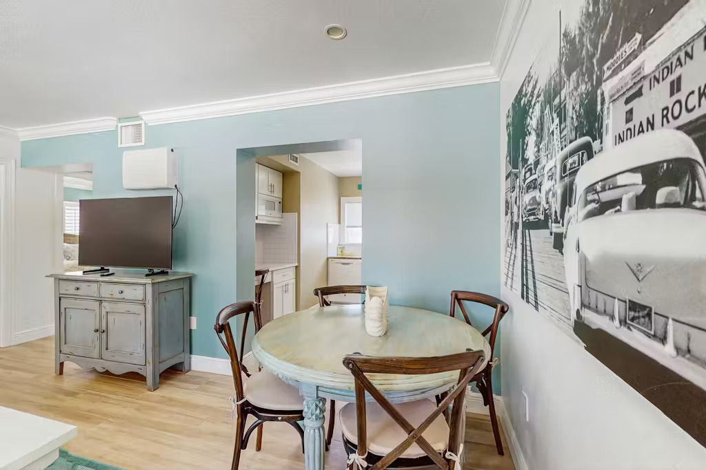 Located in the quiet and charming community of Indian Shores, this delightful unit is cozy and contemporary. It sits on the West side of Gulf Blvd, just 50 yards away from the beach.